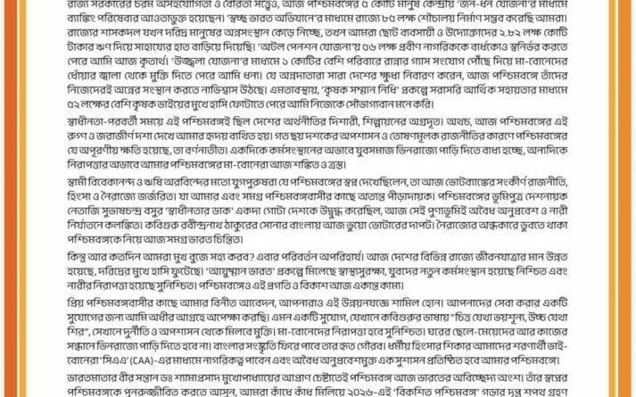 ‘জয় মা কালী’ লিখে বাংলায় মোদীর খোলা চিঠি